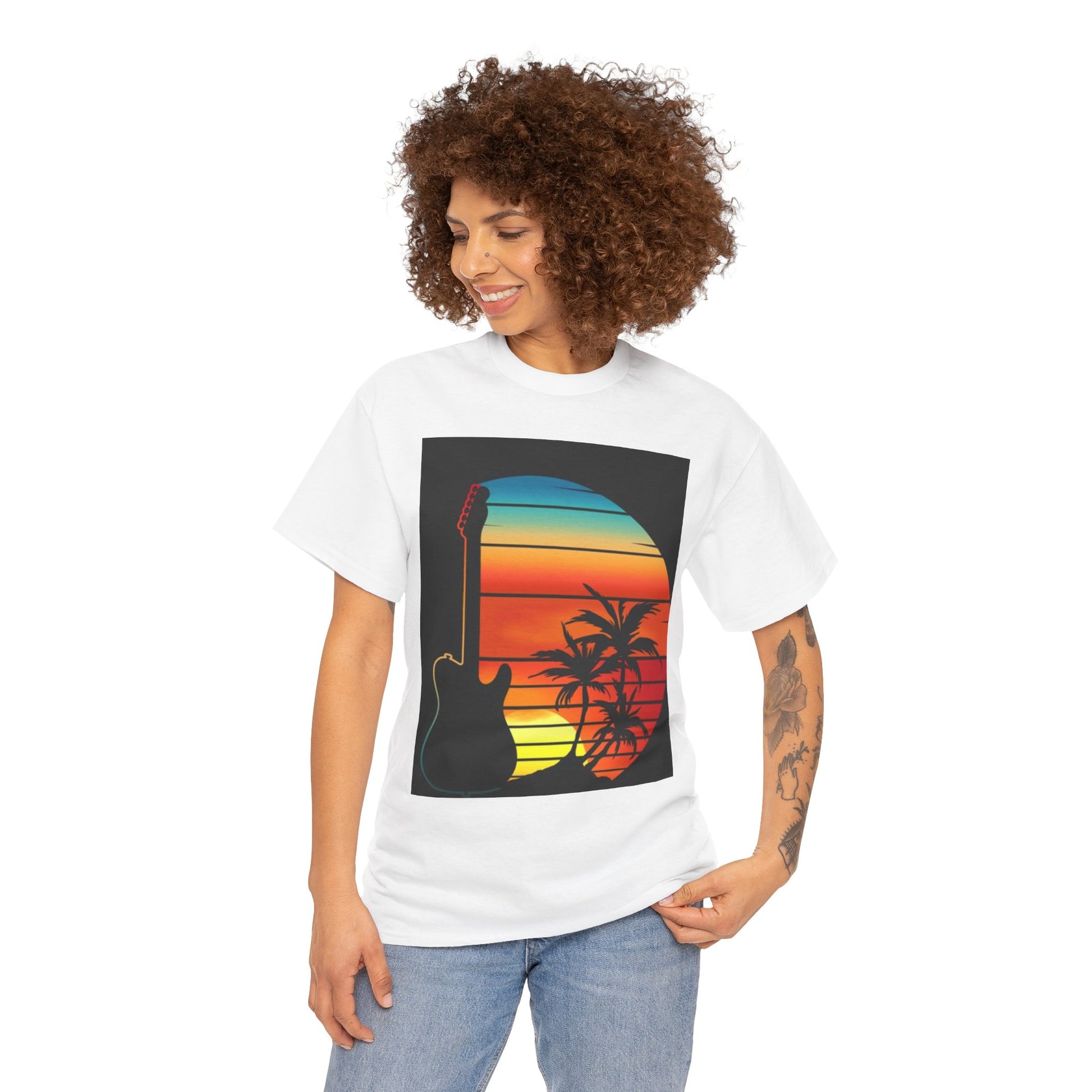 Sunset Guitar Vibe Unisex Heavy Cotton Tee
